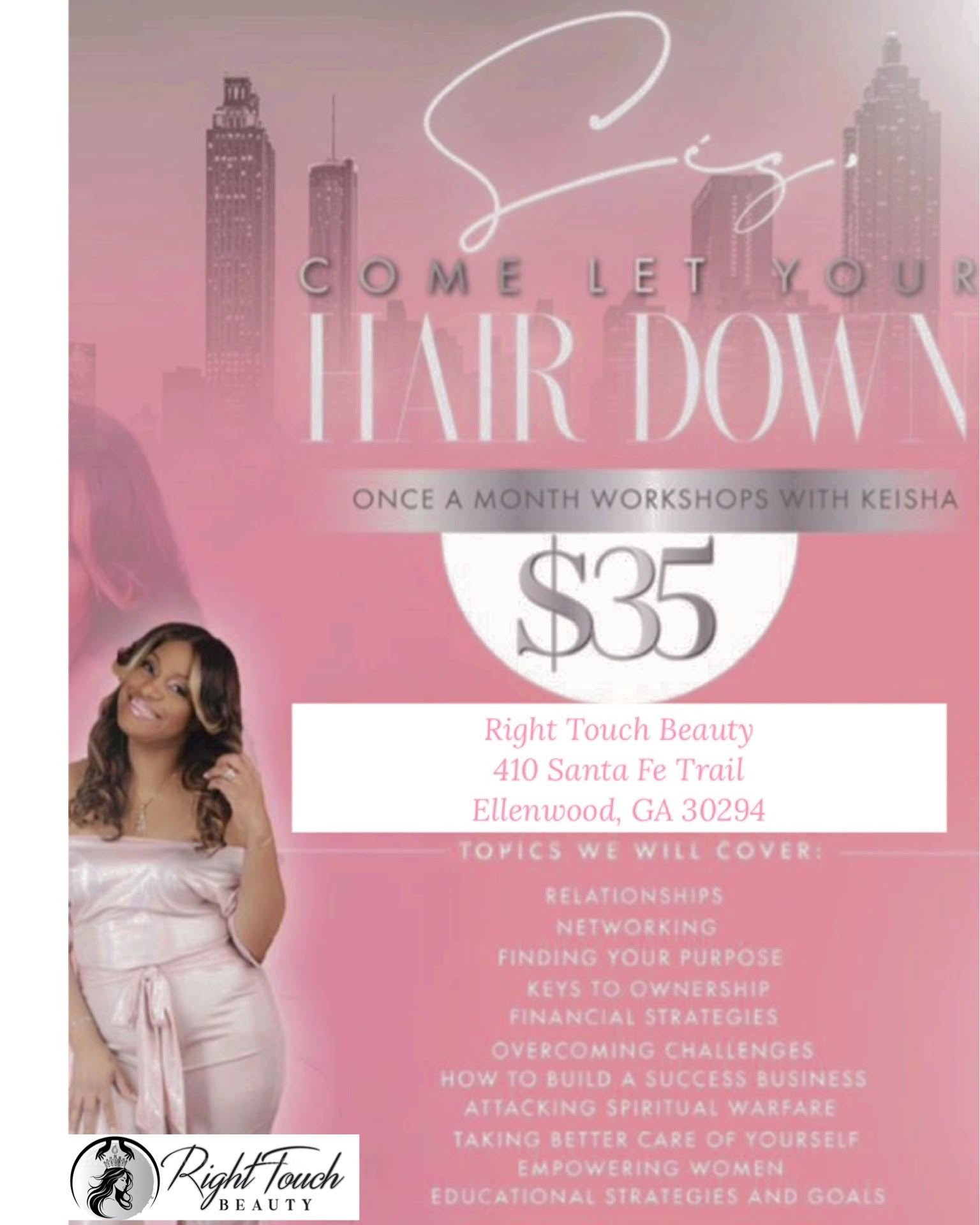 • A Safe Space to Grow: Our workshops are held in a warm and welcoming atmosphere at Right Touch Beauty in Ellenwood, GA, providing a safe space for you to learn, share, and grow. Whether you’re coming to boost your confidence, seek business advice, or explore new networking opportunities, you’ll find like-minded beauty professionals to connect with.